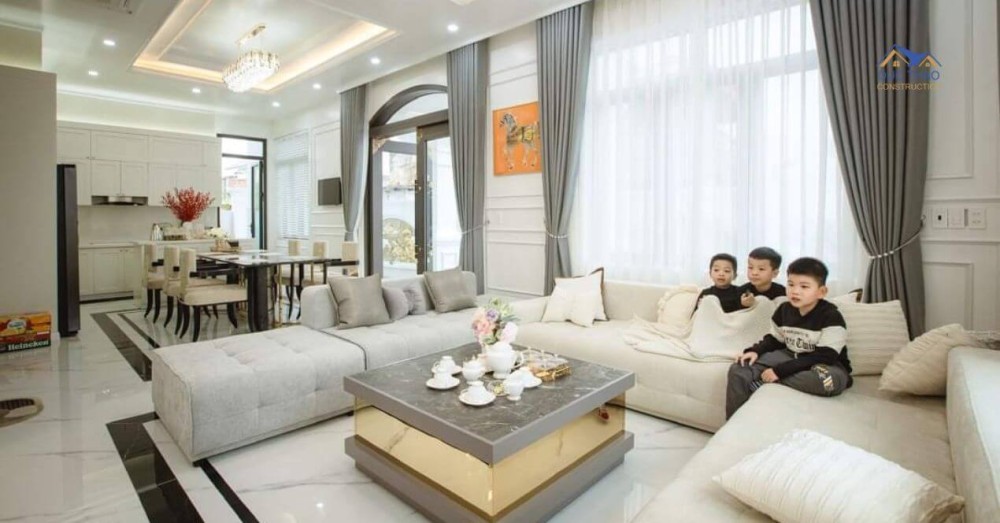 Phòng khách sang trọng tạo không gian mở với bếp ăn