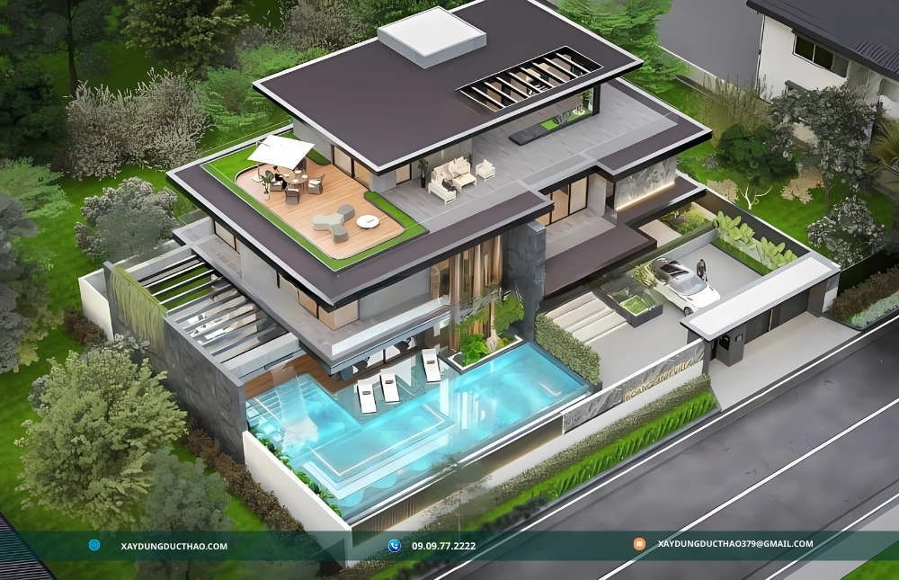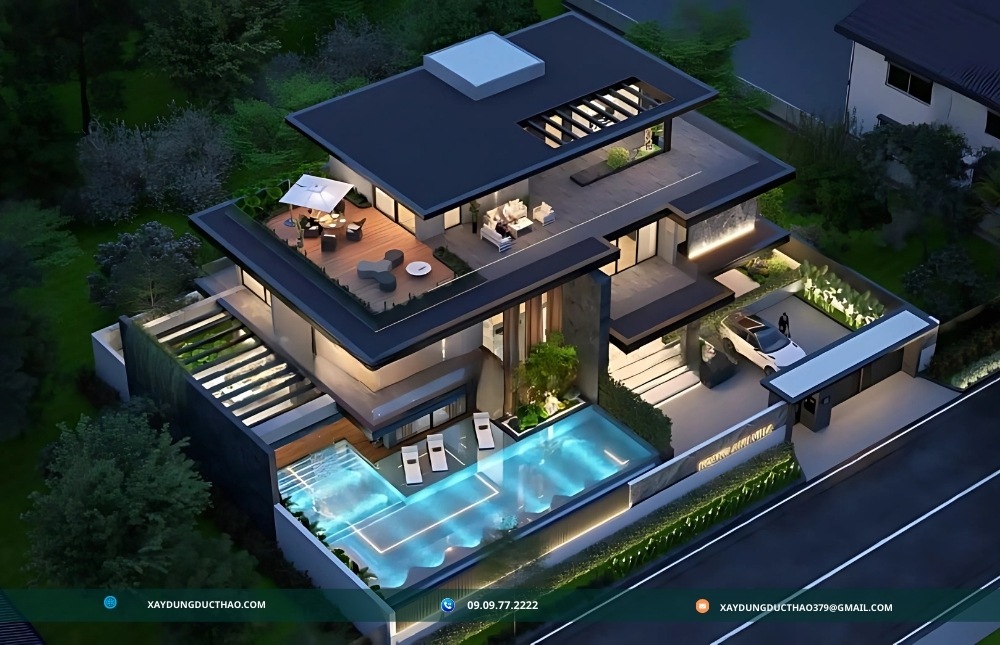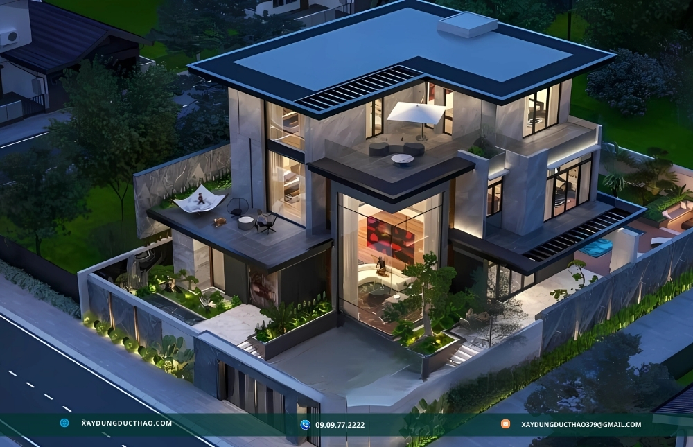 Công ty xây dựng Đức Thảo đã thành công trong việc thiết kế biệt thự hiện đại với sự tích hợp hoàn hảo cảnh quan xung quanh, tạo ra những không gian sống hòa quyện tuyệt vời với thiên nhiên. Các biệt thự của Đức Thảo nổi bật với việc sử dụng các cửa sổ kính lớn và ban công rộng, cho phép ánh sáng tự nhiên tràn ngập và mở rộng tầm nhìn ra ngoài. Đội ngũ thiết kế của Đức Thảo không chỉ chú trọng đến kiến trúc hiện đại mà còn tinh tế trong việc bố trí sân vườn, hồ bơi và các khu vực thư giãn ngoài trời, tạo sự liên kết mượt mà giữa không gian trong nhà và ngoài trời. Sự kết hợp này không chỉ mang lại vẻ đẹp thẩm mỹ mà còn nâng cao chất lượng cuộc sống, giúp gia chủ tận hưởng sự thoải mái và sự gần gũi với thiên nhiên ngay tại ngôi nhà của mình.