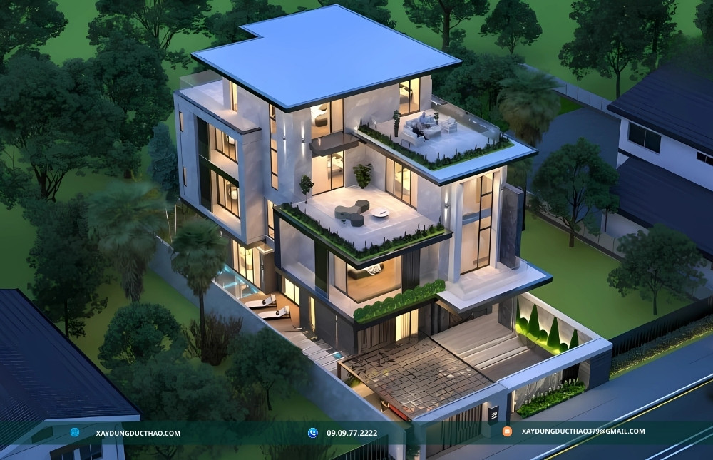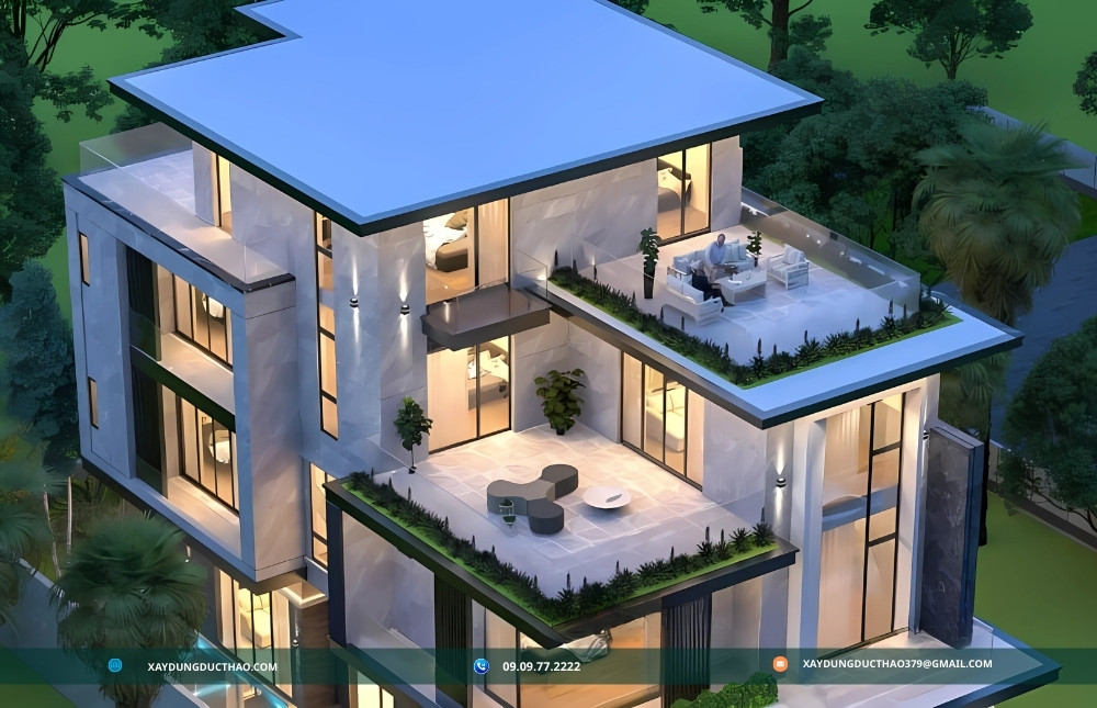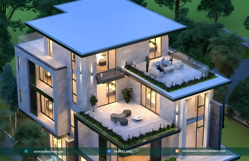 Dự án biệt thự 3 tầng do Công ty xây dựng Đức Thảo thi công tại Phan Thiết là một minh chứng rõ nét cho sự kết hợp hài hòa giữa kiến trúc hiện đại và không gian xanh. Ngôi biệt thự được thiết kế tối ưu công năng sử dụng, đồng thời đảm bảo yếu tố thẩm mỹ và sự tiện nghi cho mọi thành viên trong gia đình.